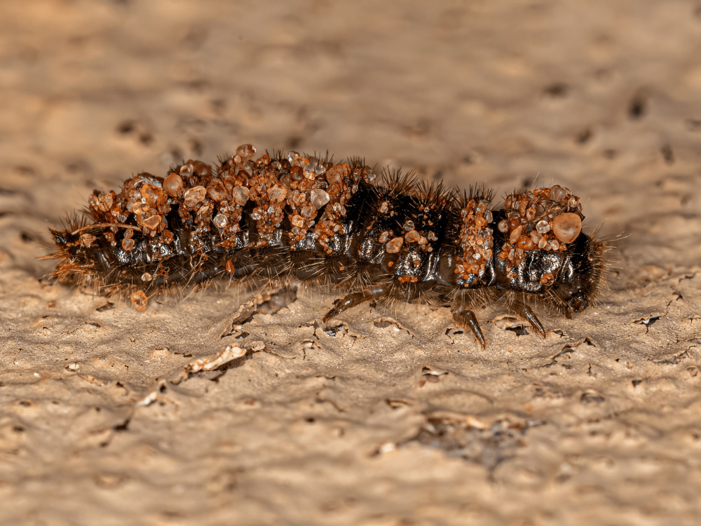 – Larves en forme de petit ver poilu dans les coins sombres ou sous les meubles,